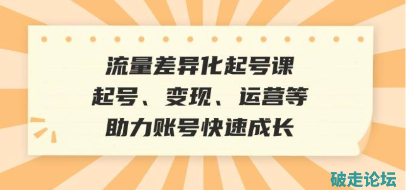 流量差异化起号课:起号、变现、运营等,助力账号快速成长