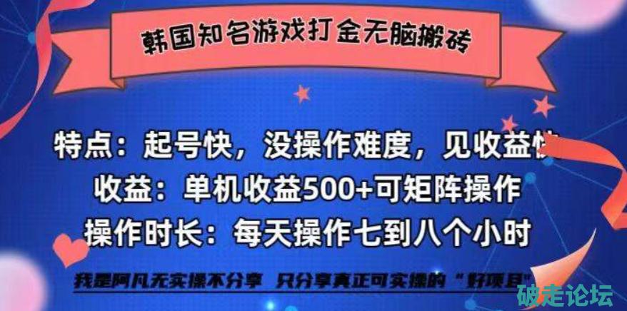 韩国知名游戏打金无脑搬砖单机收益500+