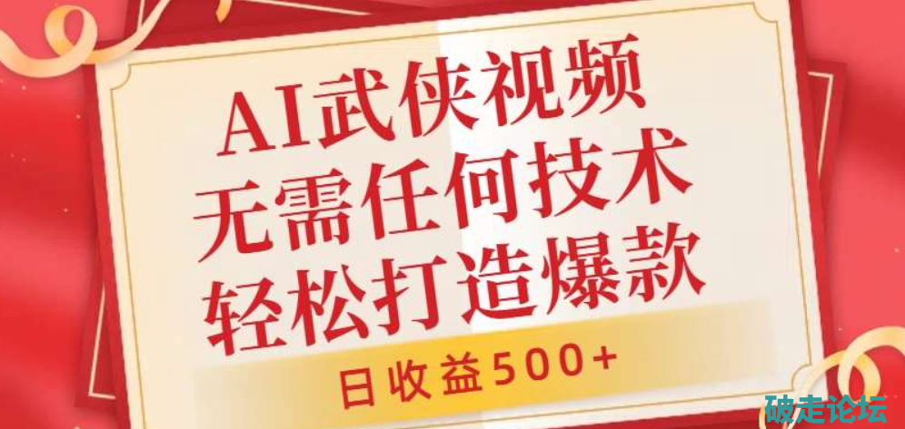 AI武侠视频,无脑打造爆款视频,小白无压力上手,无需任何技术,日收益500+【揭秘】