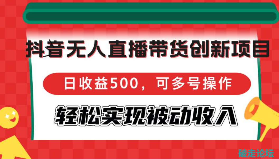 抖音无人直播带货创新项目,日收益500,可多号操作,轻松实现被动收入