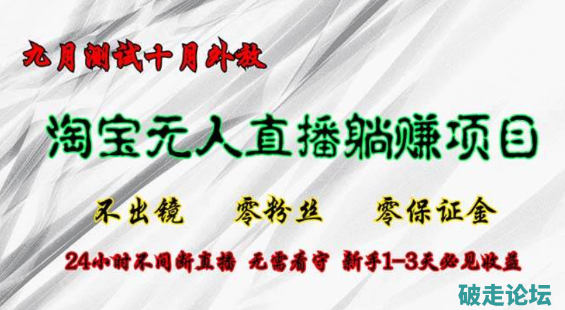 淘宝无人直播最新玩法,九月测试十月外放,不出镜零粉丝零保证金