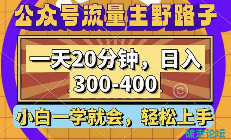公众号流量主野路子玩法,一天20分钟,日入300~400,小白一学就会