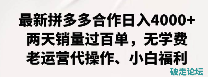 拼多多最新合作日入4000+两天销量过百单,无学费、老运营代操作、小白福利
