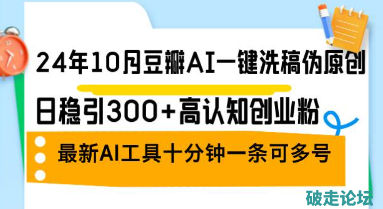24年10月豆瓣AI一键洗稿伪原创,日稳引300+高认知创业粉,最新AI工具