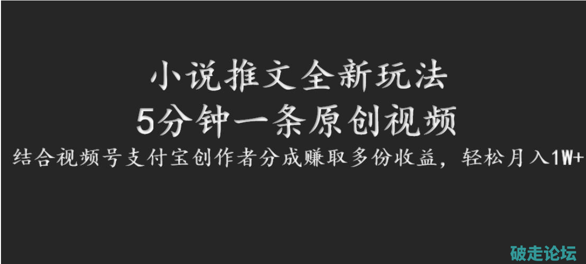 小说推文全新玩法,5分钟一条原创视频,结合视频号支付宝创作者分成赚取多份收益