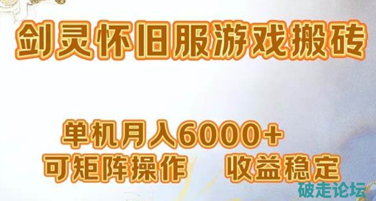 网游剑灵打金搬砖,单机月入6000+,可矩阵操作,收益稳定。