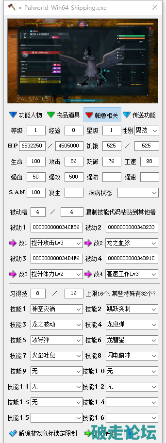 幻兽帕鲁 小斧头修改器 直接修改帕鲁技能和被动1.31