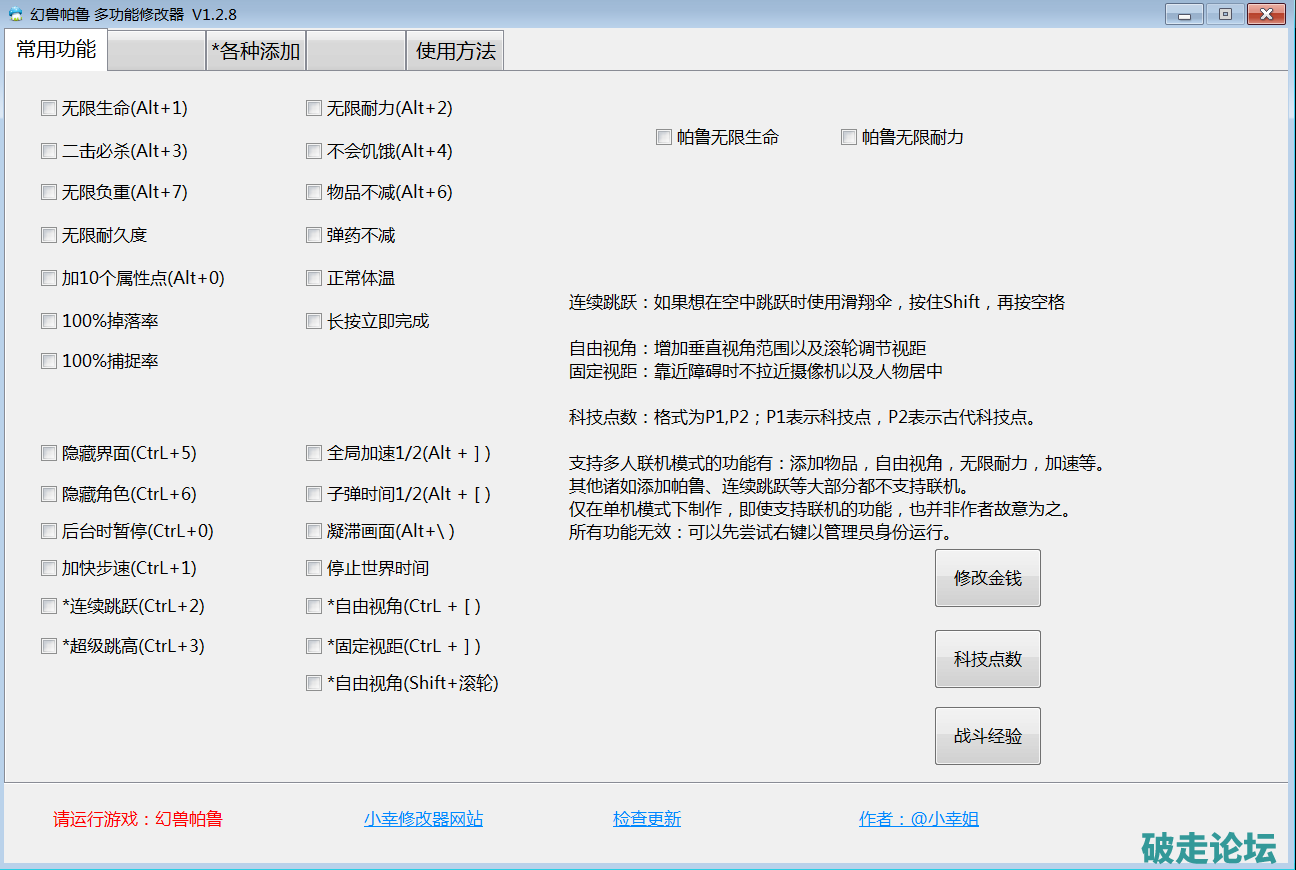 小幸幻兽帕鲁最新修改器详细介绍:免费功能、解锁收费新增物品功能1.28