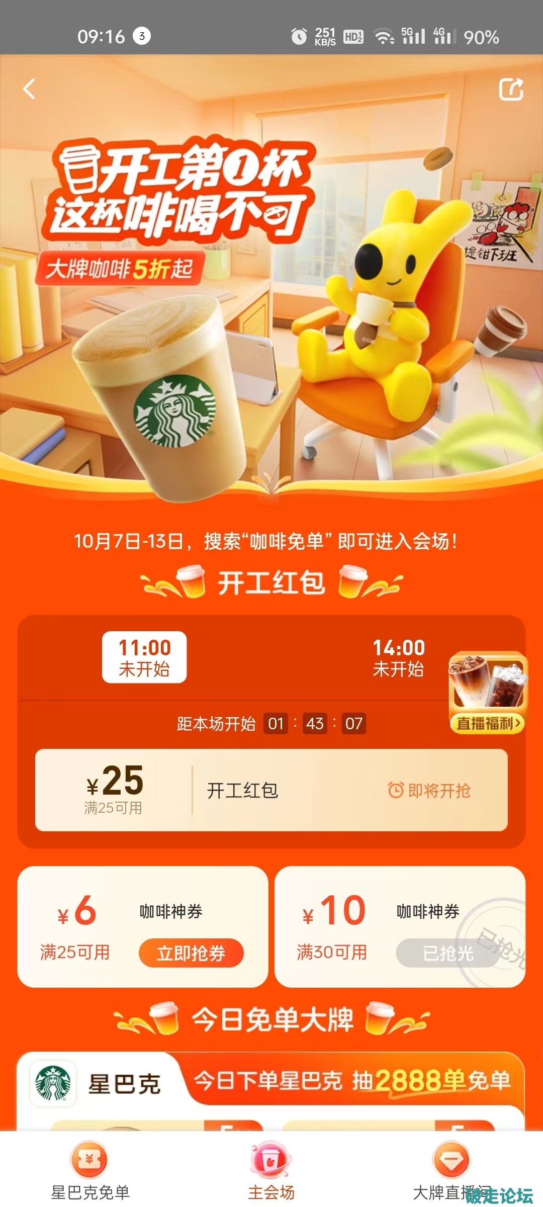 星巴克咖啡美团免单活动