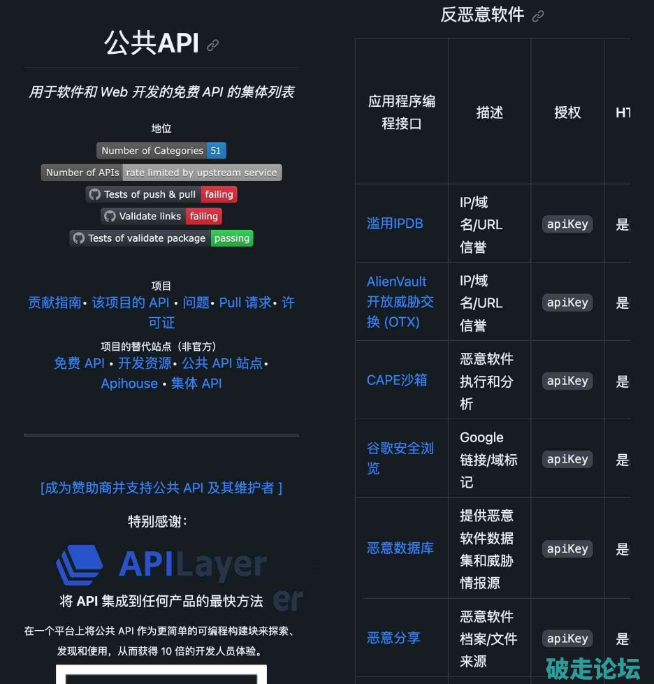 全球免费 API 集合列表-Public APIs10.11