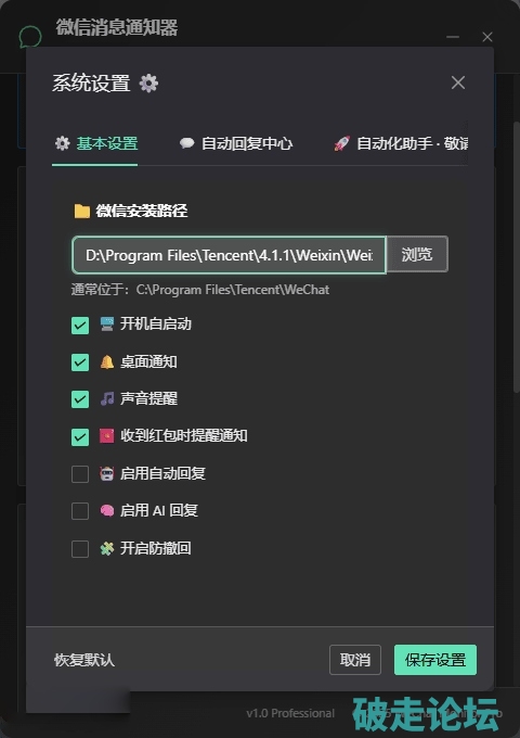 微信消息通知管理器 带自动回复AI回复· 桌面提醒版 支持微信4.1.1.19