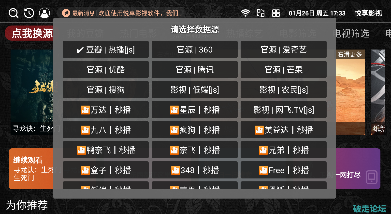 悦享影视TV版/内置多个数据源/支持点播+电视直播/无需登录/公益观看1.27